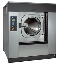 - High speed barrier washer extractor with two opposed doors. Total separation of clean and dirty linen. Dirty linen is loaded on the front door and clean linen is unloaded from the rear.